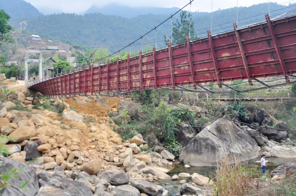 Xem xét hình ảnh ghi lại thu thập được tại thời điểm xảy ra sự cố có khoảng 50 người đi trên một nửa chiều dài cầu phía bản Chu Va 6. Tính ra tải trọng rải đều dọc cầu là (50 người x 60 kg/người) / 27m ≈ 111 kg/m nhỏ hơn 150 kg/m. Như vậy, sự cố do nguyên nhân quá tải có thể loại trừ.