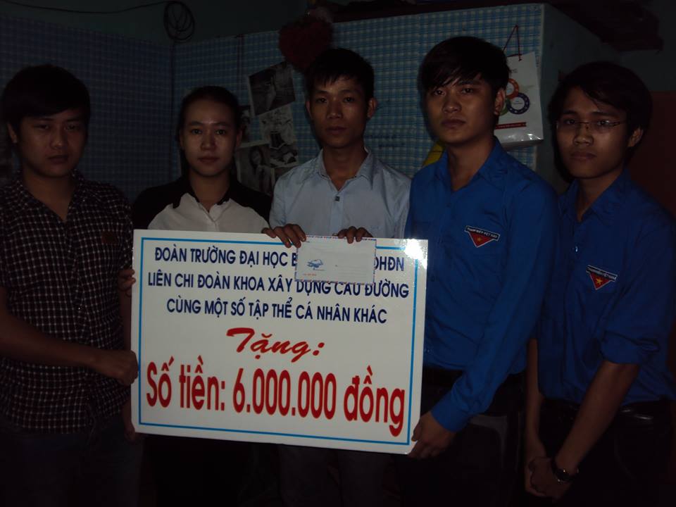 Nhận được thông tin về hoàn cảnh của Quyết, ban thường vụ LCĐ đã đến thăm, động viên và chia sẻ những khó khăn, mất mát mà Quyết đang phải vượt qua. Với tinh thần tương thân tương ái, lá lành đùm lá rách, LCĐ Khoa XDCĐ đã lập quỹ kêu gọi các tổ chức, cá nhân ủng hộ cho Quyết. Với số tiền 6 triệu đồng, dù không nhiều nhưng phần nào là động lực giúp Quyết vượt qua khó khăn hiện tại, giữ vững niềm tin vào cuộc sống để tiếp tục theo đuổi giấc mơ trở thành chàng kỹ sư trong tương lai. Chúc Quyết nhanh chóng vượt qua những rào cản tinh thần và vật chất ở phía trước, tiếp tục hướng đến những dự định và mục tiêu trong tương lai mà Quyết đã lựa chọn.